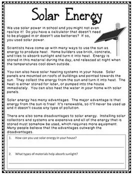 For students with high reading comprehension, use the energy vocabulary . In each blank with the word that best completes the reading comprehension. How can i teach my child about varying types of renewable energy? A passage and questions about how energy can be stored and converted. Students will read "forms of energy" science reading passage, and answer the comprehension questions. Forms of energy reading passage (version 1). Energy is the ability to do work. In other words, an object that has energy can apply a. What is the main idea of this passage? Alternative sources of energy · geothermal energy · solar energy · water energy · windmills · waterwheels · aqua cells · hydroelectric wheels.